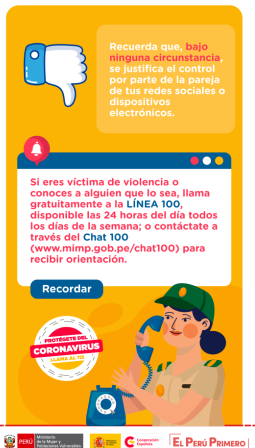 Material gráfico sobre prevención de la violencia de género, específicamente en el contexto de emergencia sanitaria nacional.